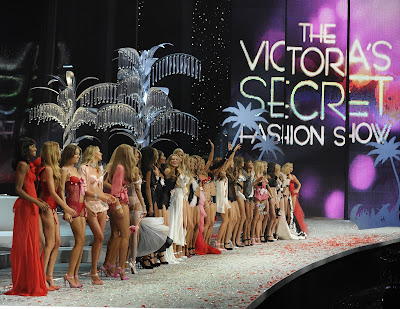 Les mannequins dont la porto-ricaine Joan Smalls se succèdent sur le podium en dessous sexy pour le plus grand plaisir des invités, dont le mannequin Kate Moss.