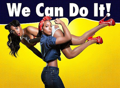 Pour cet anniversaire un photoshoot qui tombe à point nommé et qui pour l’occasion habille le blog de nouvelles couleurs, celui de Kelly Rowland par le grand photographe Derek Blanks. Kelly et son alter ego: La Pin-Up vs. la version black de la fameuse Rosie the Riveter , icône de la campagne symbolisant les six millions de femmes américaines qui travaillèrent dans les usines pour produire le matériel de la seconde guerre mondial « We Can Do It ».