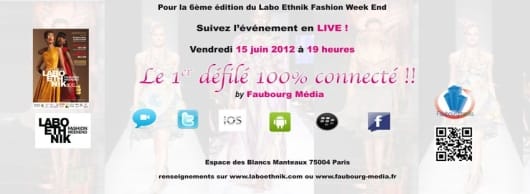 Les personnes s’étant abonnées à la page Facebook de Faubourg média, en cliquant sur « j’aime », pourront avoir le code d’accès pour suivre en exclusivité et en live depuis n’importe quel pays, le défilé du Labo Ethnik 2012.