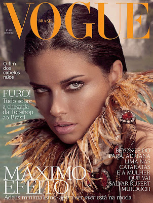 La belle Adriana Lima en couverture du Vogue Brazil de février 2012. Photographiée par André Passos à Foz do Iguacu(Brésil), édité par Giovanni Frasson, stylisme et beauté par Mark Gurgel Max Weber.