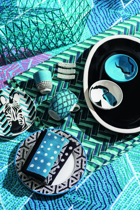 Des terres immenses et inconnues, un voyage exotique, grandeur nature… L’Afrique et ses tissus géométriques, ses couleurs vivantes, ses signes graphiques rencontrent des lignes à l’épure italienne.