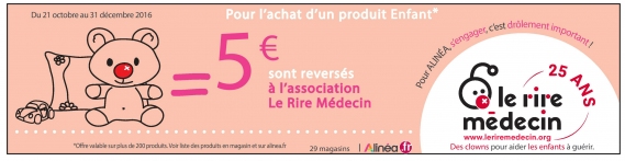 Plus d’informations dans les 29 magasins, sur alinea.fr et www.leriremedecin.org