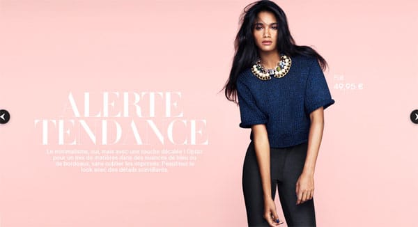 Alerte tendance du moment par H&M : « Cette saison le minimalisme est à l’honneur, mais avec une touche décalée ! Adoptez le look en mixant des détails scintillants et des nuances de bleu ou de bordeaux. »