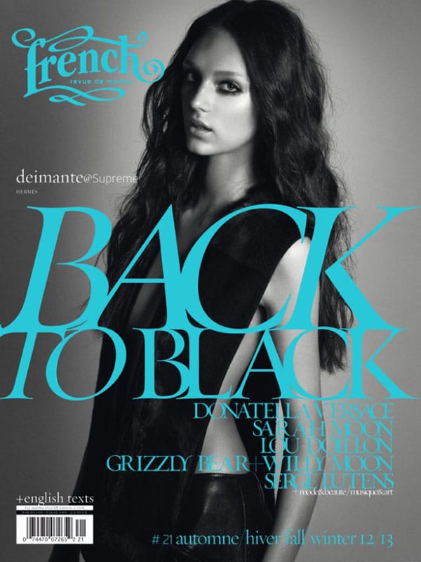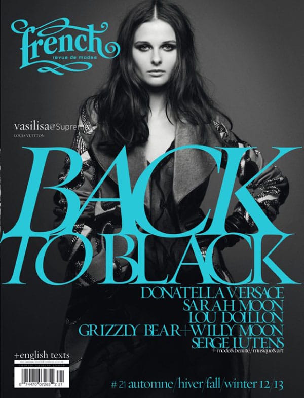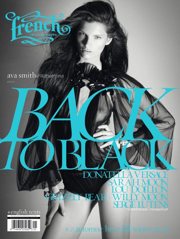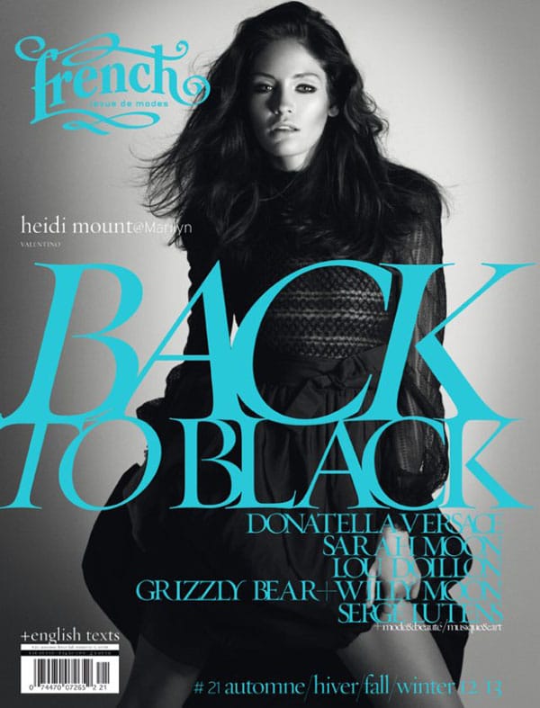 Pour son 21ème numéro, French Revue de Modes présente 16 couvertures en noir et blanc, cette édition pour l’Automne-Hiver 2012 s’intitule « Back to Black ».