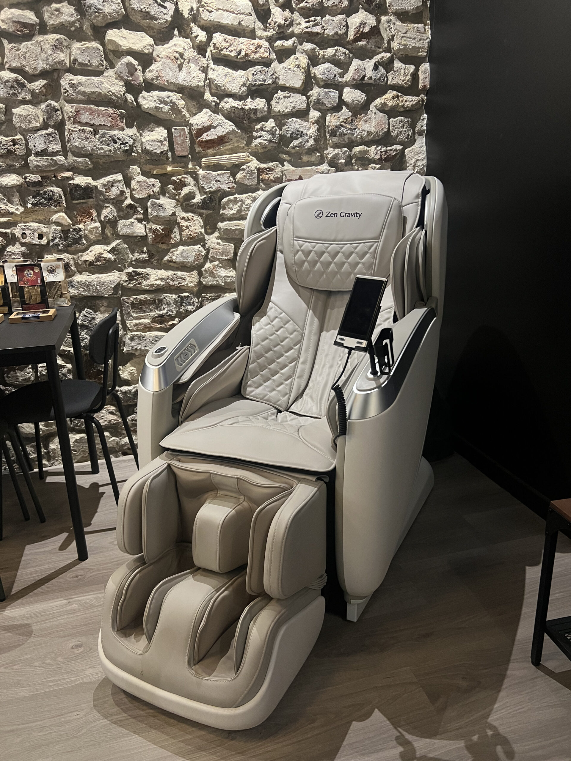 - Des fauteuils massants Zen Gravity : conçus par des thérapeutes français, ces fauteuils intelligents qui ont fait leurs preuves dans le fameux « Bar à sieste » présenté dans cet article. Ils proposent 6 programmes différents, de la récupération à l’anti-stress, dignes d’une séance d’ostéopathie