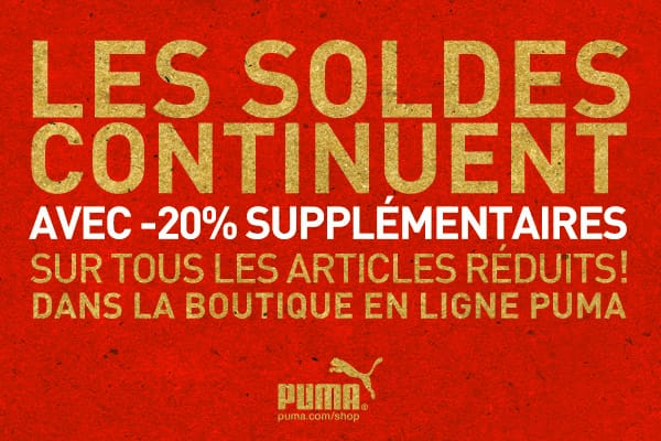 Sales continue on www.shop.puma.fr . Starting today until July 31st take advantage of an additional 20% off PUMA end of season sale using promo Code: summersale12 !