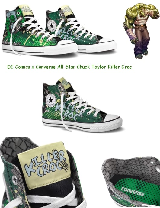 Last autumn, Converse dressed the famous Chuck Taylor All Stars with Batman colors.This spring, the Converse Chuck Taylor All Star gets the Wonder Woman and Killer Croc designs. (see article of Oct. 10, 2011).