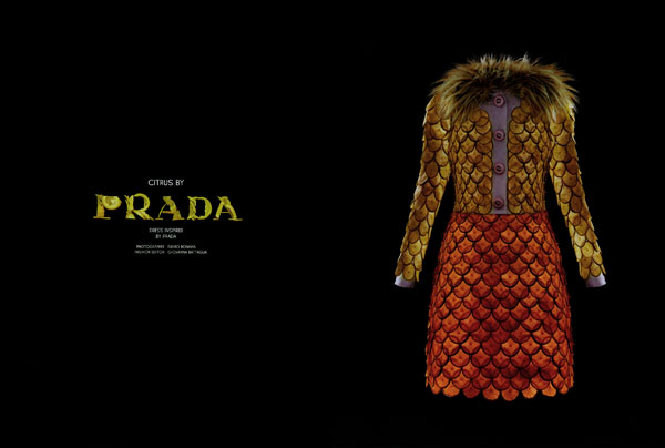 Prada, Louis Vuitton, Alexander McQueen and Moncler dresses made with fruits and vegetables: Lettuce, anchovies, walnuts, oranges and citrus. Your thoughts?