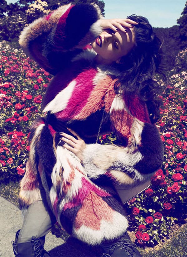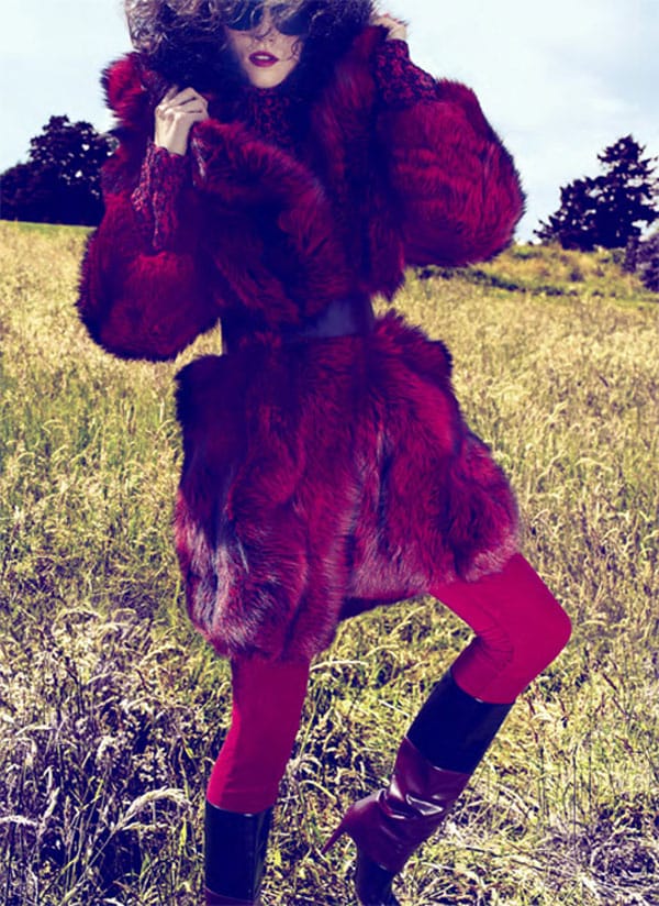 Dutch fashion model (born in Lithuania) Egle Tvirbutaite shot by photographer David Roemer for the « Wild Mannered« . All in fur editorial by Marie Claire US.