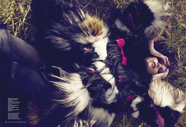Le mannequin Néerlandais d’origine Lithuanienne Egle Tvirbutaite par le photographe David Roemer pour l’édito « Wild Mannered« . La belle pose tout en fourrure pour le magazine Marie Claire U.S.