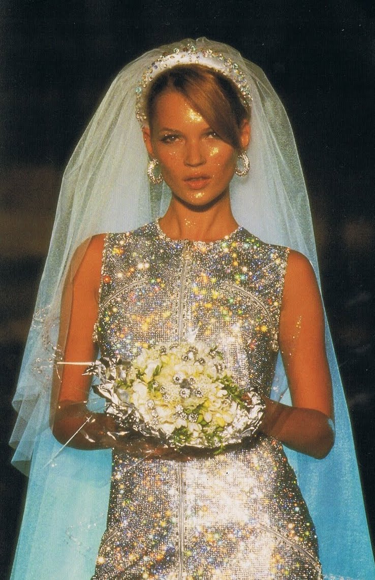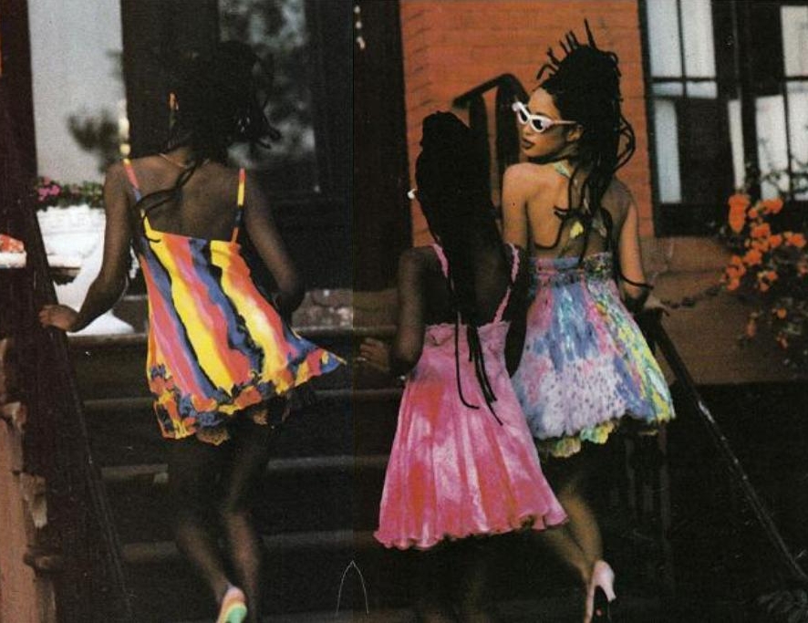 La Diva en devenir fait des ravages dans sa mini robe Versace orange, rose et violette ! Comment oublier ? A l’époque toutes les filles la voulaient, moi y compris.