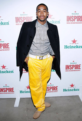 Omarion, multi-récidiviste en matière d’erreur fashion. Non content de s’afficher en début de semaine aux côtés de la chanteuse Ciara avec un style déjà très limite il réitère à chaque apparition ces derniers jours! Sans vouloir être méchante, avec tous ses breloques bijoux et cette tenue qui ne le met pas du tout en valeur on pourrait croire que c’est sa première grande sortie de Mr Grandberry. Il ne lâche rien et ose se présenter cette fois dans cet horrible pantalon jaune en velours.