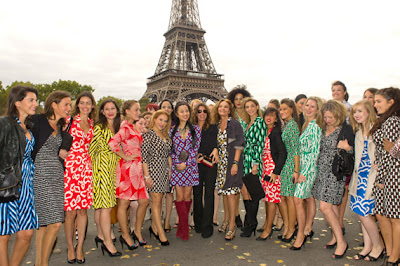 La créatrice arrive se jour là au volent de sa DVF Fiat 500 accompagnée de ses amies Clotilde Courau et Mademoiselle Agnès. Dès 12h une centaine de jolies jeune femmes se déhanchent vêtues de la fameuse « wrap dress » signées de l’icône des 70s.