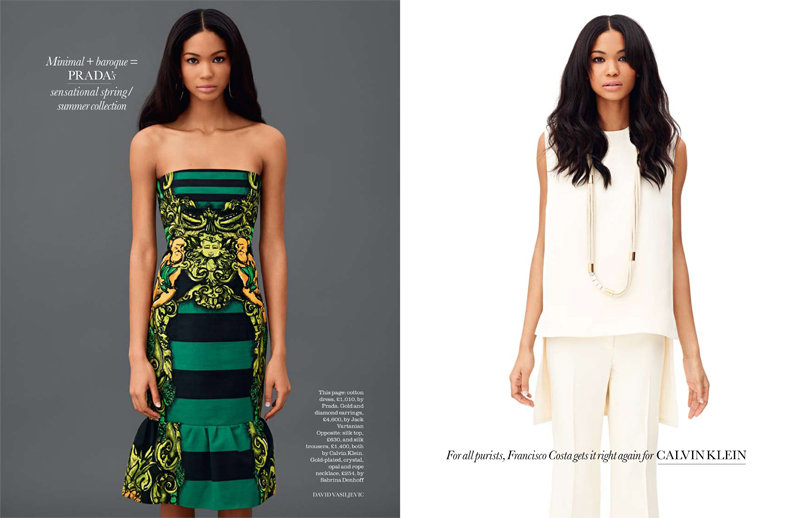 Chanel Iman par le photographe David Vasiljevic pour Elle UK, le mannequin nous donne un avant goût des couleurs et style de la saison à venir ‘après l’équipe du magazine. En Prada, Chanel, Yves Saint Laurent ou Chloe, Chanel est un fashion show à elle toute seule.