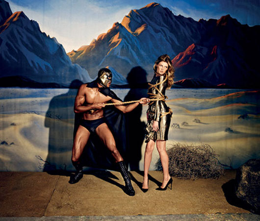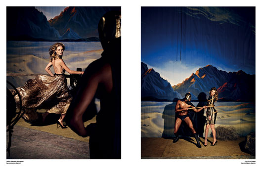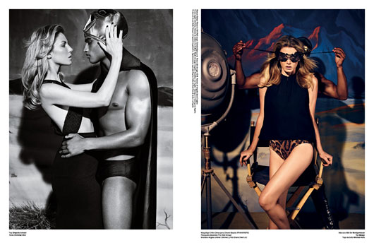 Chaleur, encore et toujours avec Rob Evans qui joue le conquérant, super héro de la belle d’Angela Lindvall pour « El Santo » de V SPAIN #12 SPRING 2012.
