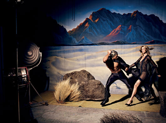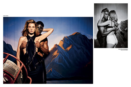 It’s getting hot in here, Rob Evans is playing the conquerant hero of Angela Lindvall for « El Santo » by V SPAIN #12 SPRING 2012, shot by Daniel Riera and styled by Tom Van Dorpe.