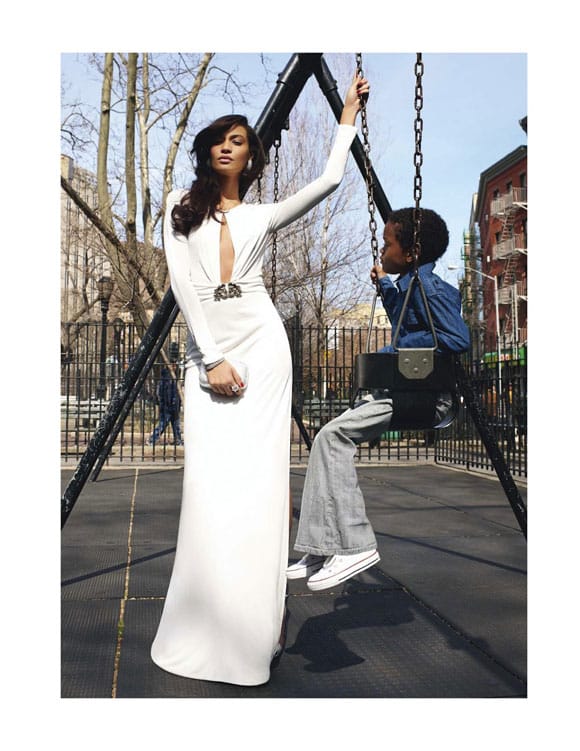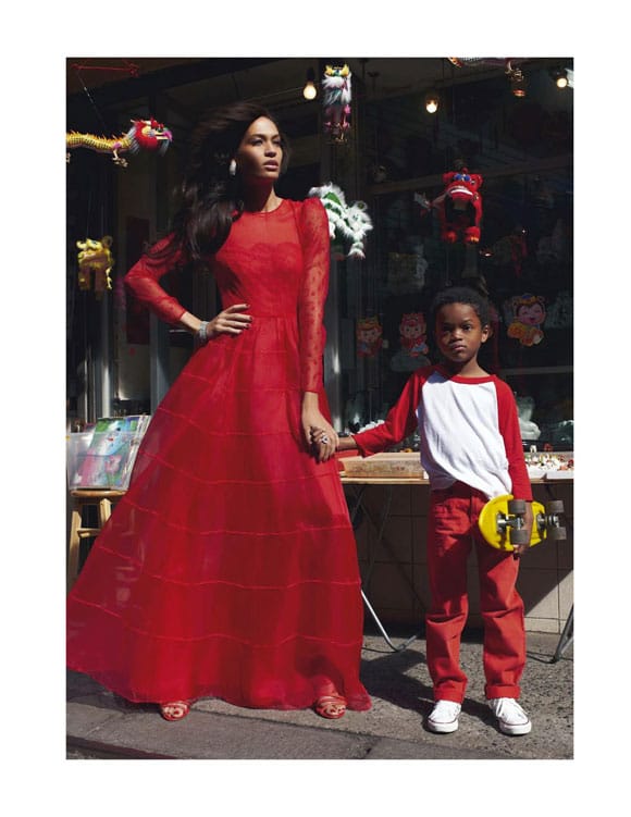Le Top des Tops toujours au Top, Joan Smalls majestueuse par Terry Richardson pour « Gloria » par Vogue Paris de mars 2012. Style maman décalée dans une aire de jeux pour enfants aux côtés d’un adorable petit garçon.