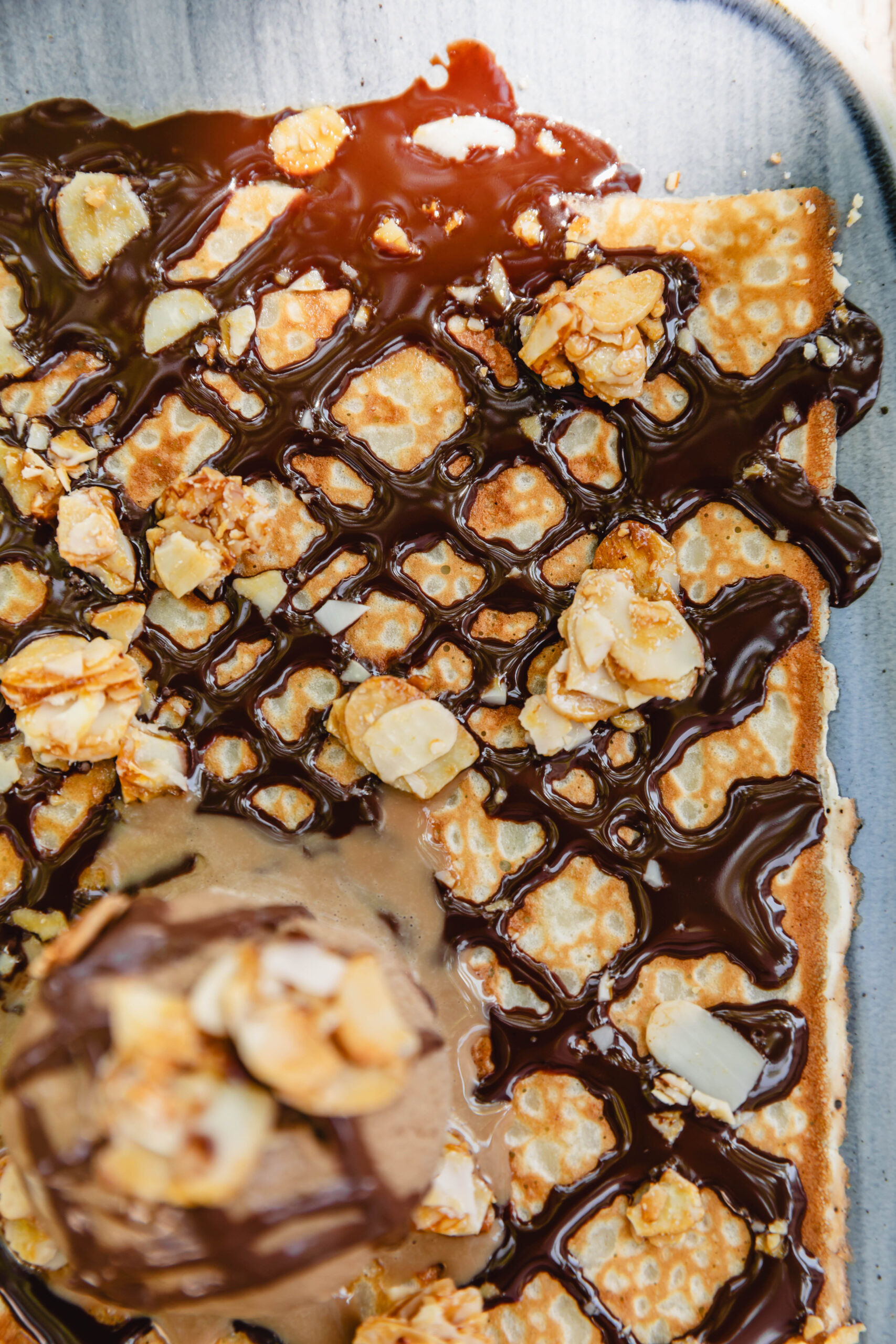 L’Atelier reste fidèle à ses engagements : farines françaises moulues à la meule de pierre (25 tonnes de sarrasin breton par an), œufs plein air, pâte à tartiner sans huile de palme élaborée avec le chocolatier Cluizel, emballages zéro plastique. Tout est fait maison le matin même.
