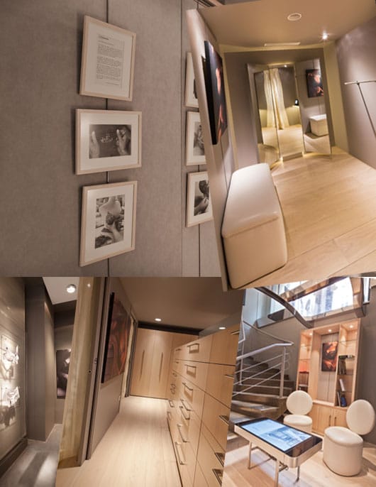 En matière de lingerie il est conseillé d’essayer avant d’acheter, donc direction les cabines d’essayage situées à l’étage inférieur. C’est avec émerveillement que je découvre une pièce style dressing de luxe et la petite salle d’attente équipée d’une table tactile style iPhone géant qui donne accès à l’ensemble des collections et permet ainsi de tester différentes combinaison de personnalisation des créations Empreinte.