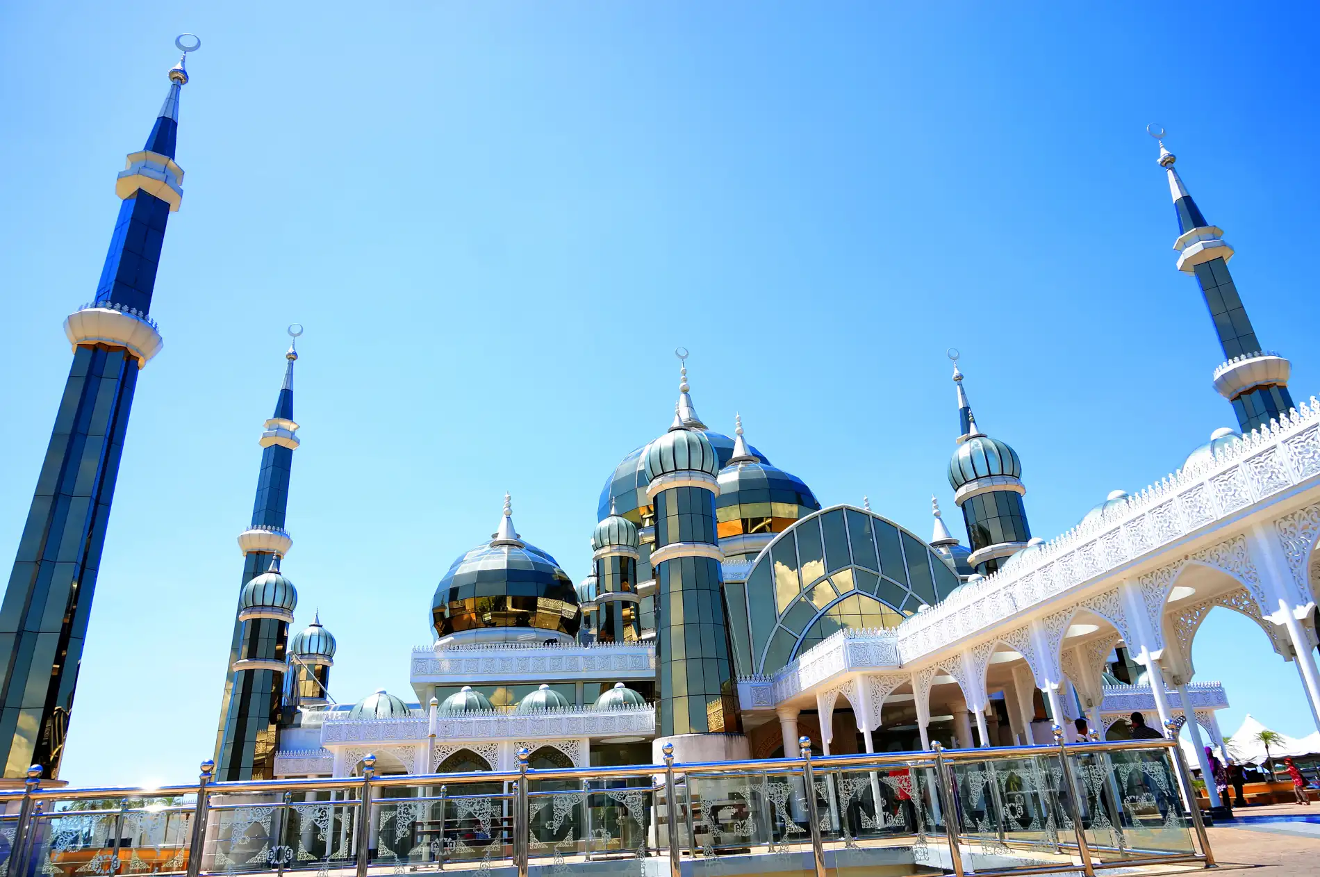 La Mosquée de Cristal, située à Kuala Terengganu, en Malaisie, est une fusion harmonieuse entre la tradition et la modernité. Elle a été construite entre 2006 et 2008, et a été officiellement inaugurée le 8 Février 2008 par le Sultan Mizan Zainal Abidin.