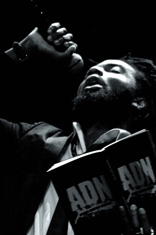 Marc Alexandre Oho Bambe, « Citoyen du tout-monde », comme il se définit est un artiste pluridisciplinaire qui a choisi le Slam pour s’exprimer. Le Slam, art oratoire né d’une idée du poète américain Marc Kelly Smith en 1986.