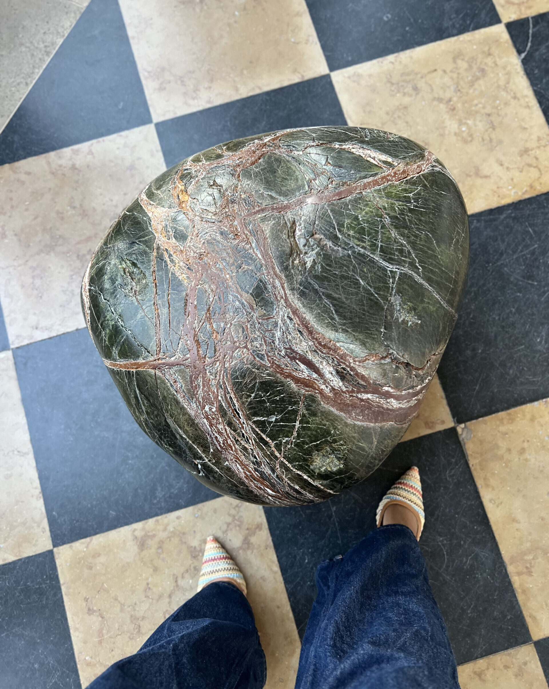Au cœur de cette installation, la collection « C » révèle l’approche créative unique du duo formé par Marc-Antoine Barrois et l’architecte Antoine Bouillot (cabinet BellonBouillot). Cette ligne de mobilier exceptionnelle trouve son inspiration dans une découverte poétique : de petites roches singulières glanées sur la plage de Belle-Île-en-Mer, où réside le créateur.