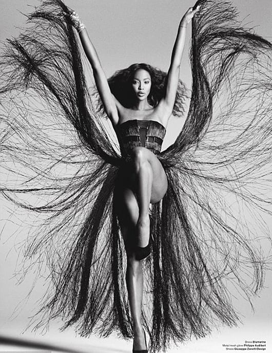 Naomi Campbell rend hommage à la légendaire icône Tina Turner dans le V Magazine de mars 2012. A 41 ans, la féline Naomi prend la pose pour les photographes italiens Daniele Duella et Iango Henzi, pour une série photos en noir et blanc.