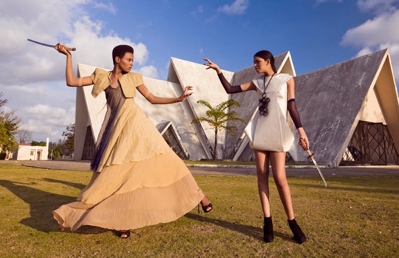 Les modèles dominicains Austria Alcántara & Nilda posent pour le magazine Pandora dans un édito intitulé « El Duelo ». Les photographes Fernando Santos & Victor Nicolas sont également à l’origine de ce magnifique stylisme.