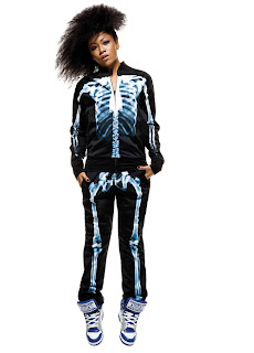 Une collection Black & With qui se compose notamment d’un survet’ style squelette et rayon X, une veste de motard 100% Adidas. Mon coup de cœur l’ensemble femme noir et blanc qui vous donne des ailes.