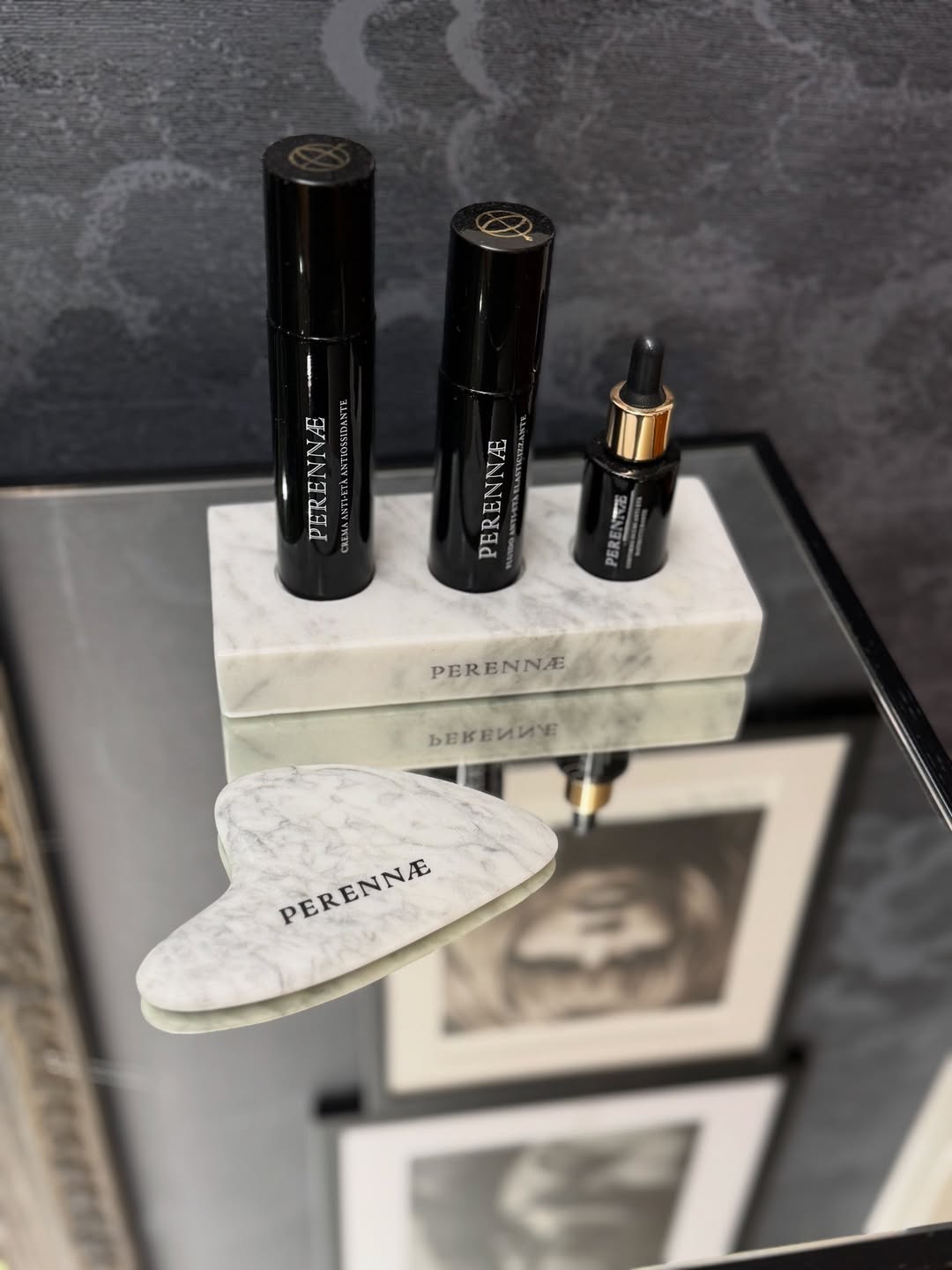 Le nom Perennae rend hommage à Anna Perenna, divinité romaine du renouveau et des cycles vitaux. Fidèle à cette symbolique, la marque revendique un rituel épuré de seulement quatre soins essentiels, conçus comme un accompagnement durable du processus naturel de régénération cutanée.
