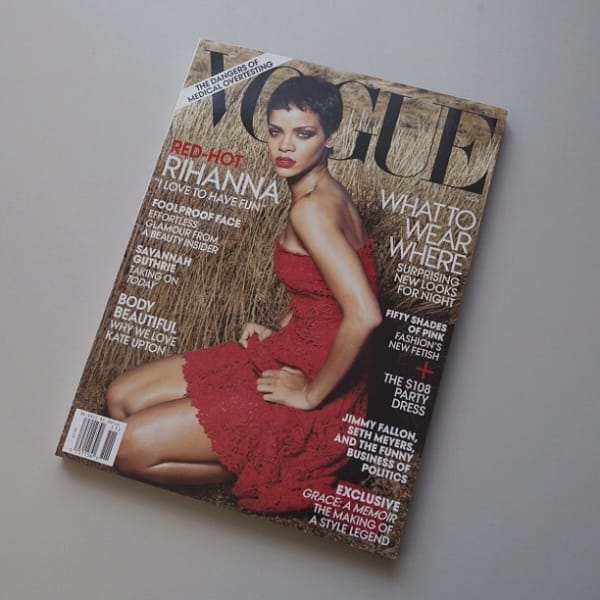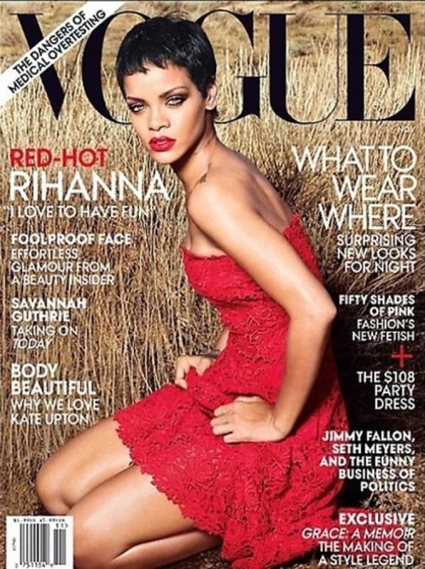 La chanteuse Rihanna qui vient de révéler la couverture de son tout nouvel album fait la couverture du magazine Vogue US de novembre 2012.