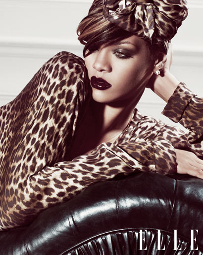 Rihanna version féline, est en couverture du Elle Magazine d’août 2010. La Rude Boy parle de son homme, de son dernier album et de ses créateurs préférés.