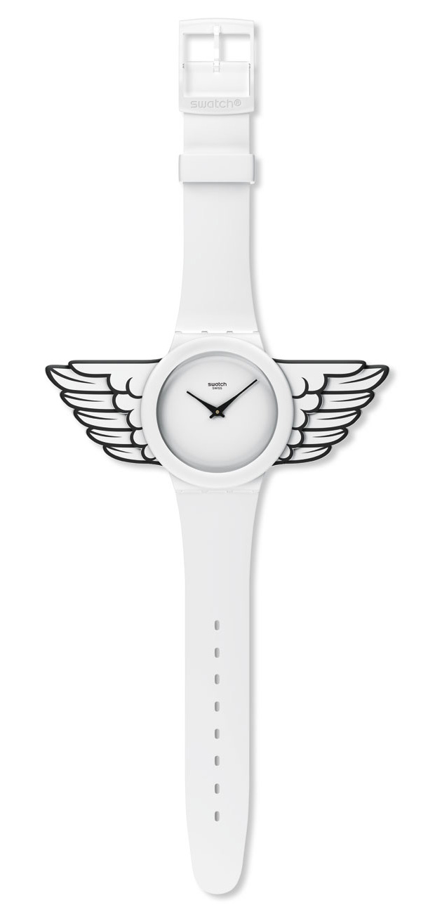 Trois montres au design très orignal: un modèle blanc ailé « Winged Swatch », la montre tableau d’art « Swatch Opulence », et la plus flashy style cartoon « Lightening Flash ». Un jeu de trois montres en édition limitée et numérotée de 777 pièces et présentées dans un emballage spécial.
