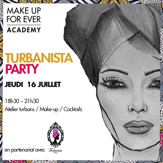 Je vous donne rendez-vous le jeudi 16 juillet de 18 h 30 à 21 h 30 à la Make Up for Ever Academy pour une soirée placée sous le signe du partage, de la beauté et du Turban !
