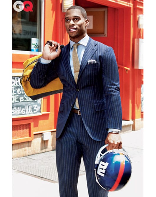 New York Giants NFL superstar Victor Cruz is featured in the September 2012 issue of GQ Magazine wearing suits by Boss Selection, Canali, Etro, J. Lindeberg, Michael Bastian and Ralph Lauren, and other pieces from Calvin Klein, Dolce & Gabbana, Gucci, Salvatore Ferragamo…