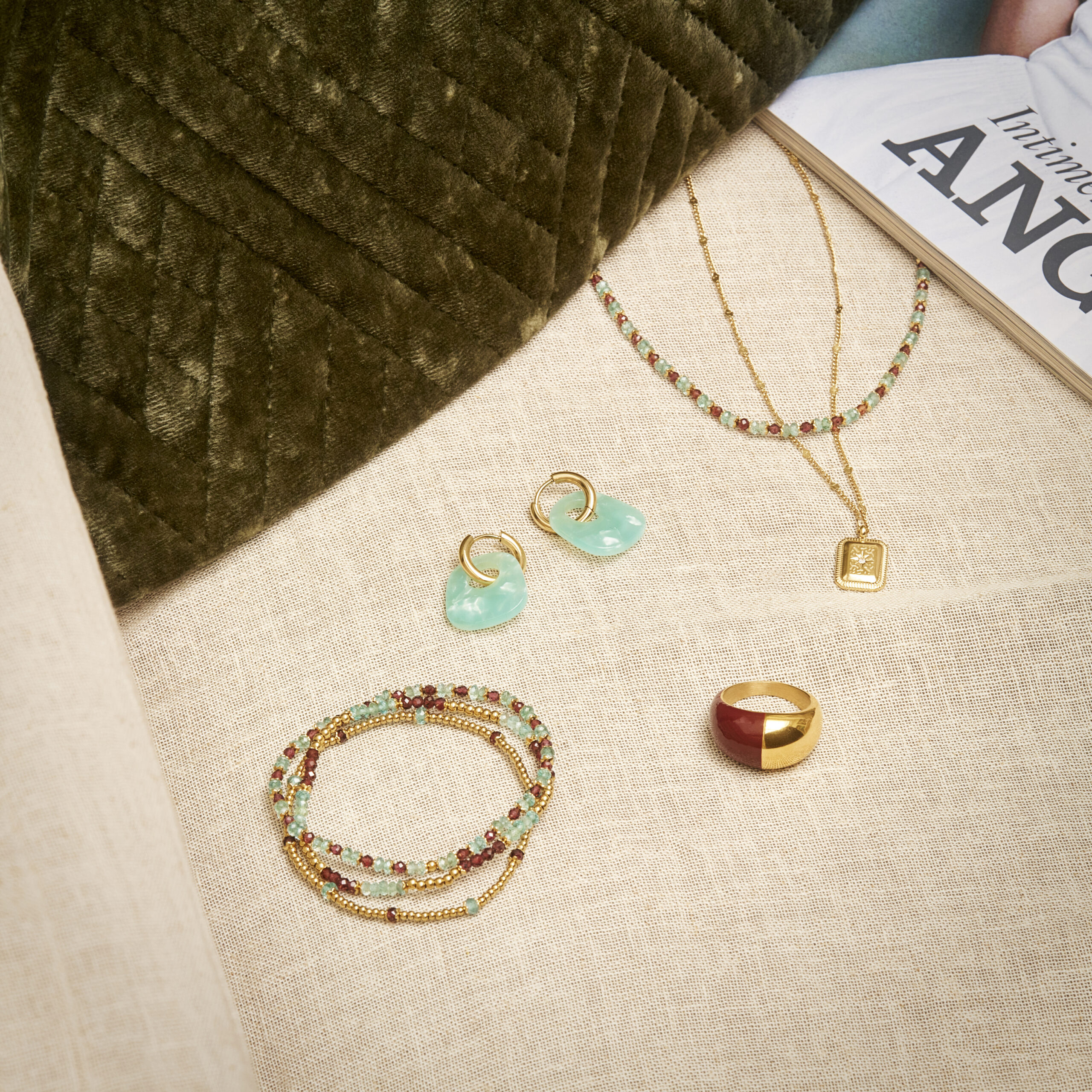 Parmi les incontournables, des sautoirs délicats, des bagues stylées, des boucles d’oreilles aux couleurs vives et même une montre connectée. Chaque bijou reflète un style affirmé, une douce transition faite de lumière, idéale pour cette saison.